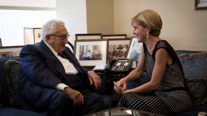 ANU Chancellor the Hon Julie Bishop meeting Henry Kissinger as Australian foreign minister. Photo: Andrew Kelly