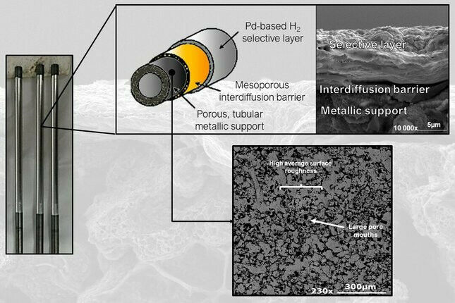 Agnolin focused on membranes made from palladium, since this material has a high selectivity for hydrogen. Traditionally, palladium membranes are supported by a substrate made from ceramics. "However, ceramics are fragile, and tend to fail or break. Our idea was to recreate these membranes on a metal tube instead, to make them stronger."