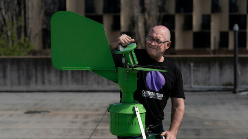 Simon Haberle doing the daily test of air quality in Canberra. Photo: Jamie Kidston/ANU - Canberra's very own 'pollen guy' has already measured extreme levels of pollen this month. What's that mean for the allergy season ahead? Extreme levels of pollen from cypress pine trees in the Canberra region this week are a clear sign allergy sufferers can expect a congested season ahead, according to a leading pollen expert from The Australian National University (ANU). Director at the ANU School of Culture, History and Language Professor Simon Haberle leads a team of researchers who track daily pollen and spore counts on the Canberra Pollen website. He says while elevated levels of allergenic tree pollen are not uncommon during late winter, extreme levels are unusual and likely brought on by the wet winter. "This is perhaps an indication of another bumper year for airborne pollen in and around the ACT," Professor Haberle said. "On 12 August we saw our first extreme allergenic pollen day of cypress pine pollen, which was followed on 16 August by another extreme cypress pollen day in combination with high pine pollen as well.