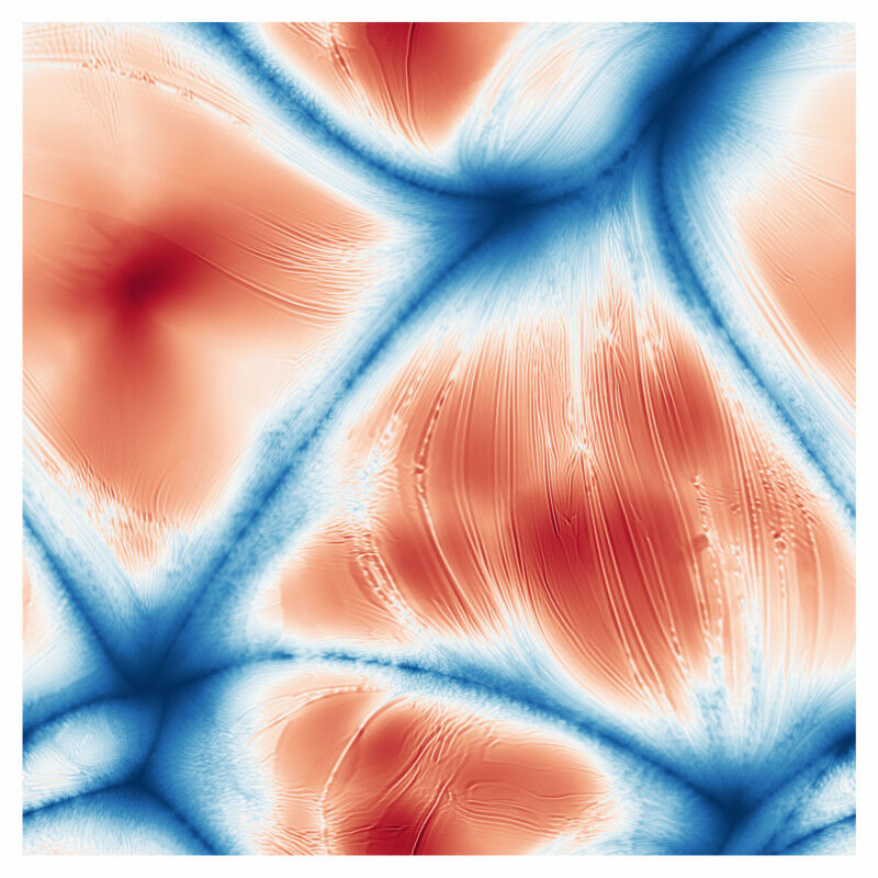 Dynamics of nitrogen ice on Pluto. Up: Part of Sputnik Planitia revealing polygonal shapes created by convection within the ice (© NASA / JHUAPL / SwRI; www.nasa.gov/image-feature/pluto-s-icy-plains-in-highest-resolution-views-from-new-horizons). Down: Temperature anomalies under surface of ice as predicted by computer model presented by study authors (© A. Morison / S. Labrosse / G. Choblet). Sputnik Planitia, a basin on the surface of Pluto 1 filled with nitrogen ice, displays an astonishing pattern of flat polygons separated by narrow troughs. This feature is a sign of thermal convection within the icy mass that constantly renews its surface. Until now the driver of this process was a riddle. However 2 and the University of Exeter unveil the mystery behind the formation of these structures.
