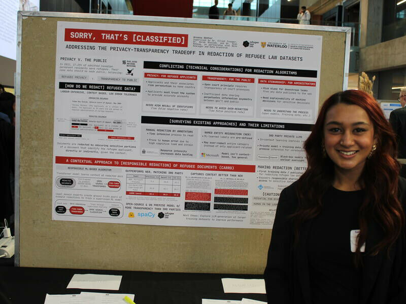 Akhter’s involvement with WiCS reminded her of how many others understood her struggles and her aspirations. The 2020 WiCS president, Iris Chen, gave her a key piece of advice: "She taught me that you have to believe in the inevitability of your success," Akhter shares. "You have to believe that the work you’re putting in now, the times you feel like a failure, are all building towards success that will come. There’s a lot of delayed gratification."In Drs. Maura Grossman and Dan Brown’s course on AI Ethics, Akhter found professors who were concerned with the same human questions that had originally driven her to be a doctor. The principles she learned in that class, she says, led to her capstone project: using machine learning to redact sensitive information in refugees’ publicly-available documents.
