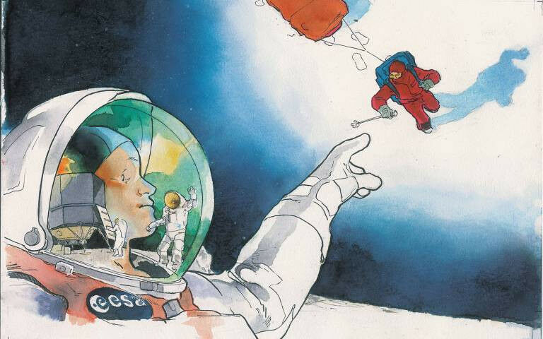 Illustration of ESA astronaut depicting ESA’s exploration plan, called Terrae Novae