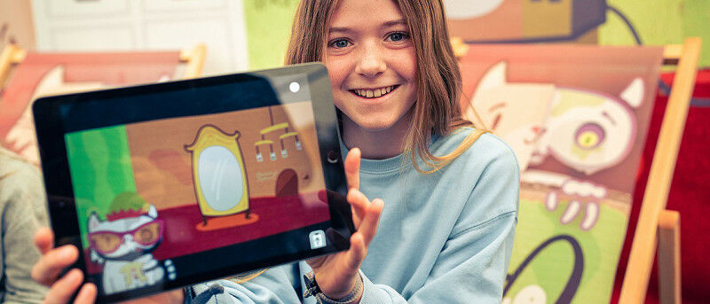 A player with the mobile game Kitty Q. (Image: Tobias Ritz / ct.qmat)