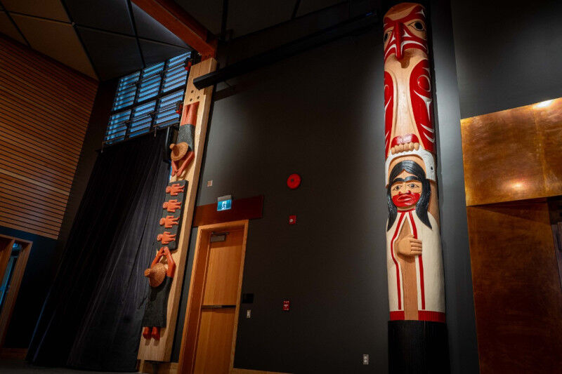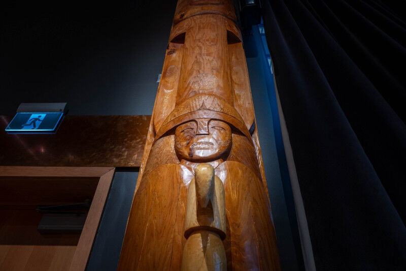 Alongside the house post from the xwm?’kw’y?m (Musqueam) Nation is one from the Skwxwú7mesh Úxwumixw (Squamish) people.