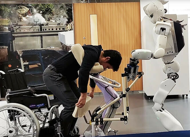 G. C. Loco-manipulation is especially complicated, as the robot has to walk while manipulating objects. In the vast majority of cases, it has to separate these tasks, completing one before turning to the other. It is a challenge to do both simultaneously without the robot losing its balance, as it encounters resistance and friction that is difficult to quantify. It nevertheless has to adapt to these disturbances. At the Irex International Robot Exhibition in Tokyo last December, we organised a demonstration of the robot Friends helping a patient move from a bed to a wheelchair. The machine can move while at the same time correctly placing the patient. This success is in keeping with our HRP-2Kai and HRP-5P humanoids, which can move industrial reels weighing 130 kg with precision!