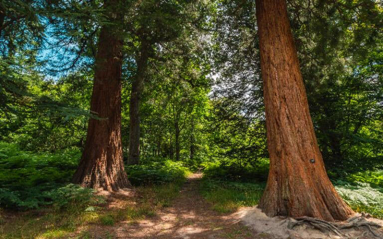 The trunks of two large connifer trees in a wood.Two redwood Trees at Wakehurst Horsebridge Woods. Credit: Visual Air © RBG Kew Imported giant sequoia trees are well adapted to the UK, growing at rates close to their native ranges and capturing large amounts of carbon during their long lives, finds a new study led by UCL researchers with colleagues at the Royal Botanic Gardens, Kew. The new research, published in Royal Society Open Science , found that the most massive species of redwood trees, Sequoiadendron giganteum , known as the giant sequoia, can potentially pull an average of 85 kilograms of carbon out of the atmosphere per year. Though introduced to the UK 160 years ago, this is the first time the trees' growth rate and resilience in the UK have been analysed. There are an estimated half a million redwoods in the UK and more are being planted, partly due to their public appeal. In the wild they are endangered with fewer than 80,000 giant sequoias remaining in their native California range. Lead author Ross Holland, formerly a Master's student at the UCL Department of Geography and now at East Point Geo, said: "Giant sequoias are some of the most massive organisms on Earth and in their native range make up some of the most carbon dense forests in the world due to their great age.