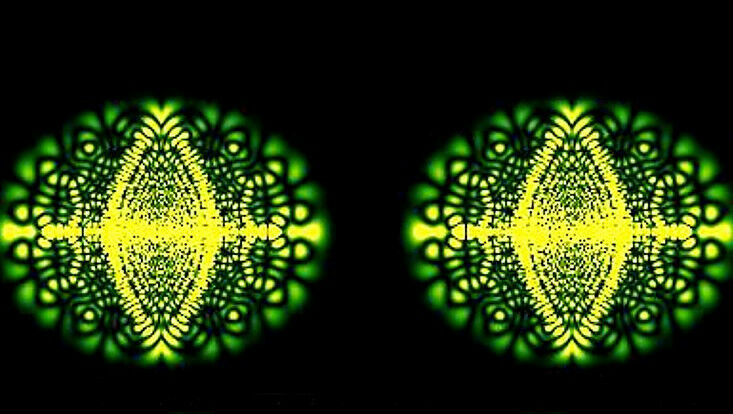 Photo: UHH/Mukherjee This pattern emerged from a computer simulation. Researchers wanted to find out the probability of finding an excited electron distributed between 2 positive atomic nuclei.
