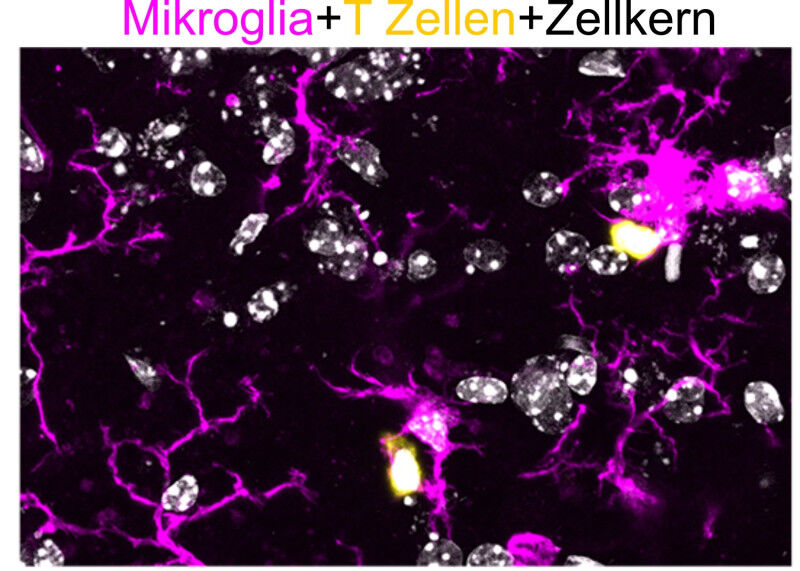 Analyses show that the microglia cells undergo dramatic changes in very early stages of the disease, long before any neuronal damage is identifiable. The cells are thereby altered into "disease-associated microglia." These release messenger substances which, among other things, call for the help of cytotoxic "killer" T cells from the bone marrow that destroy other cells. The two cell types communicate with each other via signaling molecules, and their interplay drives the inflammatory process.