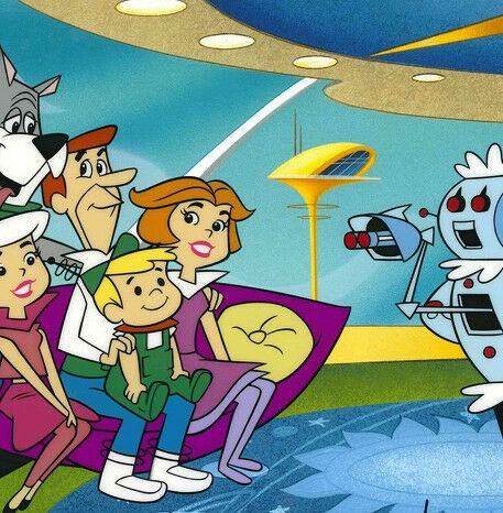 Screenshot from The Jetsons, with ’Rosie the Robot Maid’ on the right