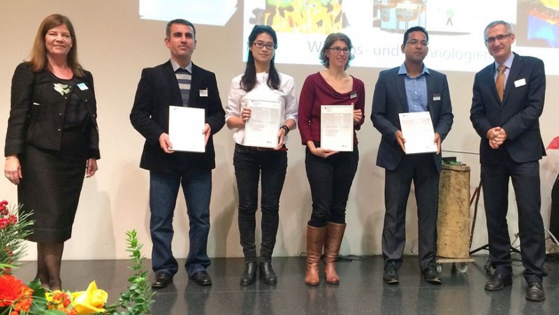Gabriele Dobenecker, Khalifah Salmeia, Jingyi Rao, Cordula Hirsch, Sabyasachi Gaan and Empa CEO Gian-Luca Bona