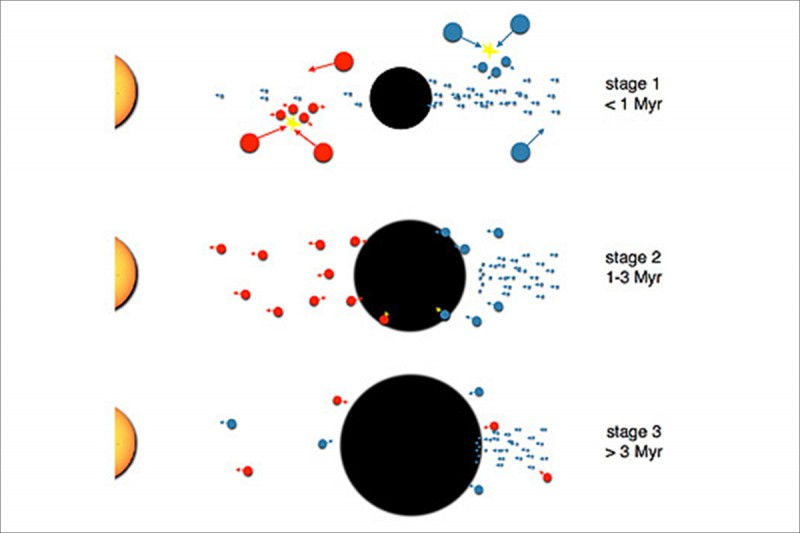 How Jupiter was formed? Data collected from meteorites had indicated that the growth of the giant planet had been delayed for two million years. Now the researchers have found an explanation: Collisions with kilometer-sized blocks generated high energy, which meant that in this phase hardly any accretion of gas could take place and the planet could only grow slowly. With an equator diameter of around 143,000 kilometers, Jupiter is the largest planet in the solar system and has 300 times the mass of the Earth. The formation mechanism of giant planets like Jupiter has been a hotly debated topic for several decades. Now, astrophysicists of the Swiss National Centre of Competence in Research (NCCR) PlanetS of the Universities of Bern and Zürich and ETH Zürich have joined forces to explain previous puzzles about how Jupiter was formed and new measurements. The research results were published in the magazine "Nature Astronomy". "We could show that Jupiter grew in different, distinct phases," explains Julia Venturini, postdoc at the University of Zürich.