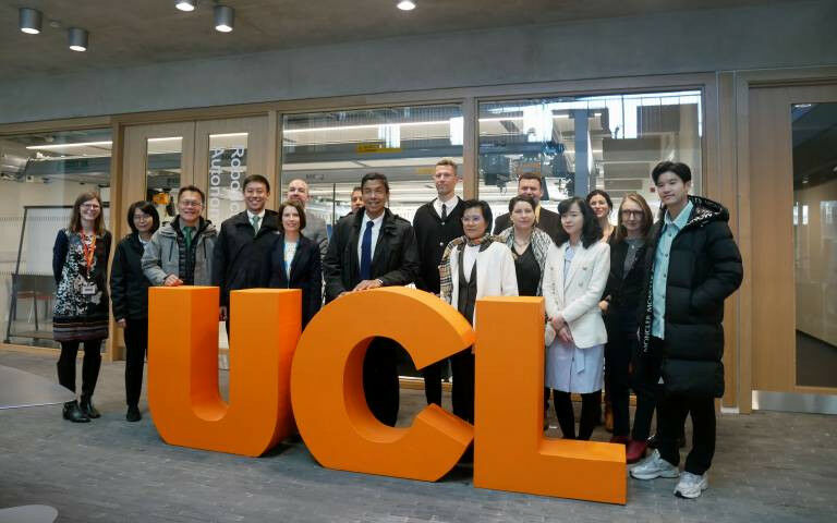 Governor of Bangkok Chadchart Sittipunt led a delegation from Thailand visiting the Urban Room at UCL East - UCL Urban Room, based at the UCL East campus, welcomed the Governor of Bangkok this week to discuss urbanisation and regeneration in global cities. Governor Chadchart Sittipunt, who is also a structural engineer, is keen to adopt policies and innovative approaches from across the world to support Bangkok's development. He led a delegation from Thailand interested in learning more about how UCL East works with communities and partners to tackle local challenges, through the UCL Urban Laboratory and the new Urban Room. The group also saw students being taught on the MASc in Global Urbanism - the first urban Masters degree to radically cut across arts, humanities, social sciences and technology studies - and visited a Connected Environments Lab where students from The Bartlett's Centre for Advanced Spatial Analysis's MSc Connected Environments work on smart cities. Governor Chadchart explained his desire to tackle the challenges Bangkok faces, including pollution, flooding, traffic, poverty, urban planning, a lack of green space and preserving Bangkok's heritage while managing redevelopment. During his UK visit, the Governor was keen to explore digital and other innovative approaches to urban policy and planning, the regeneration of cities, transportation and tackling climate change and its impacts. Joining him was Bangkok Deputy Governor and social entrepreneur Sanon Wangsrangboon, who has a particular interest in social development and education, spearheading the Open Bangkok Data Project to identify accident sites and air quality across the city.