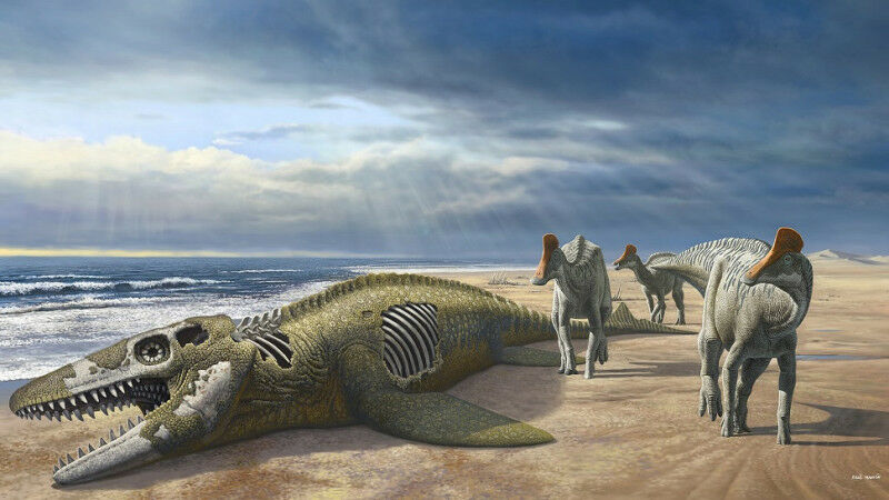 It is a mystery as to how duckbill dinosaurs spread from America to Africa despite the lack of land bridges between the continents. (Credit: Raul Martin)
