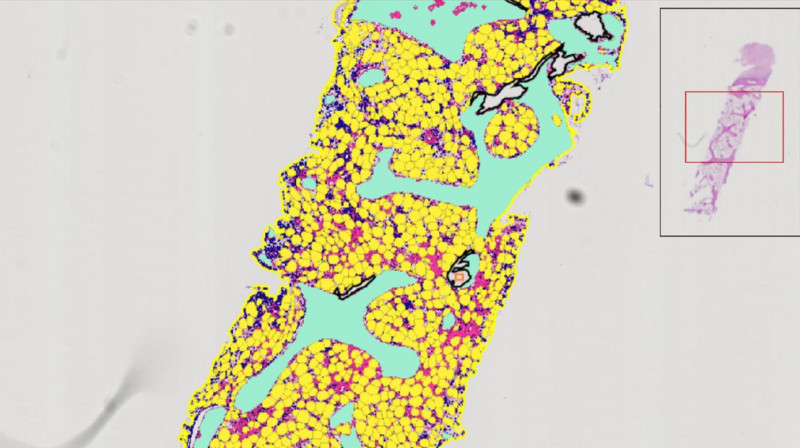 A screenshot of MarrowQuant annotating a bone marrow trephine biopsy from a patient surfing from chemotherapy-induced aplasia. Credit: Olaia Naveiras (EPFL) Scientists have developed a digital pathology workflow for quantifying bone marrow compartments in standard histological sections. Named "MarrowQuant", this workflow based on the open source software QuPath makes it possible to examine bone marrow biopsies as well as to re-examine historical collections of bone-marrow samples and even old clinical trials. The bone marrow is the soft tissue inside our bones. Its main role is to produce stem cells that will go on to become various cells of the blood, including white blood cells that fight infections, red blood cells that carry oxygen throughout the body, and platelets that control bleeding. But the bone marrow also contains fat cells, the adipocytes, which were for a long time thought of as "passive fillers" of the marrow cavity. In recent years, however, bone marrow adipocytes have been shown to carry out a far more important role within the microenvironment of the bone marrow than initially thought.