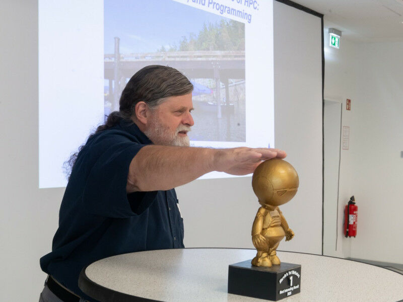 Seven finalists representing a range of disciplines-from theoretical chemistry and geodesy through to linguistics, biology and astrophysics-presented their exceptional projects, which came to fruition with the help of calculations run on Marvin. The 100 or so guests then used a smartphone app to vote for their favorite. Ultimately, the winners’ trophy was claimed by the interdisciplinary team made up of Nicolas Kluge Corrêa (philosophy), Aniket Sen (physics), Shiza Fatimah (computer science) and Sophia Falk (environmental sciences) for their project entitled "Tucano: Advancing Neural Text Generation for Portuguese." As well as "extra computing capacity," the first prize also includes close project support from a member of the HPC support team, whose assistance-from code testing to software installation and specific training-is just what the group of researchers needs.