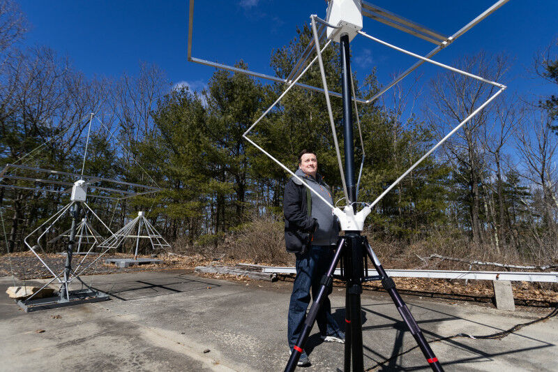 The other radar system is EMVSIS [Electro-Magnetic Vector Sensor Ionospheric Sounder], which will measure the electron or plasma density and the bulk velocity of the charged particles in the ionosphere. Both these systems comprise a distributed array of transmitters and receivers that send and receive radio waves at various frequencies to do their measurements. Traditional ionospheric sounders require high-power transmitters and large towers on the order of hundreds of feet, and can cover an area the size of a football field. But we’ve developed a lower-power and physically smaller system, about the size of a refrigerator, and we’re deploying multiple of these systems around New England to make local and regional measurements.