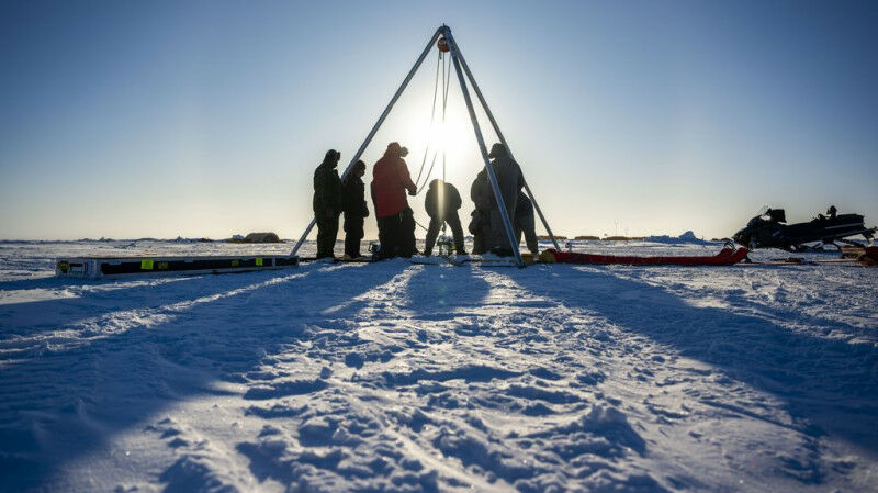 On a remote patch of the windy, frozen Beaufort Sea north of Alaska, engineers from NASA’s Jet Propulsion Laboratory in Southern California huddled together, peering down a narrow hole in a thick layer of sea ice. Below them, a cylindrical robot gathered test science data in the frigid ocean, connected by a tether to the tripod that had lowered it through the borehole.