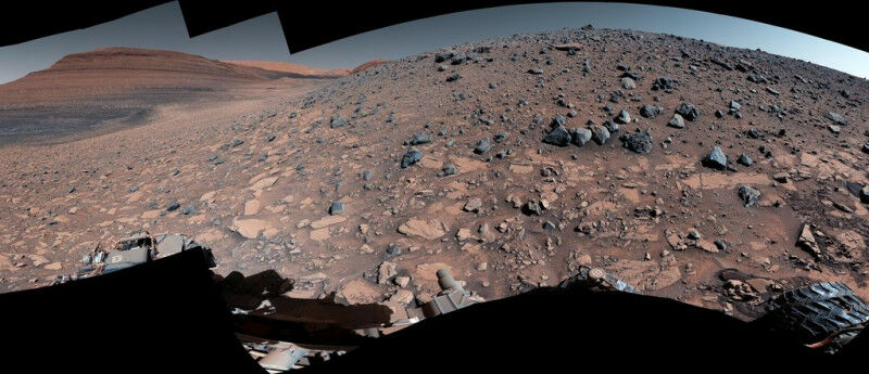 NASA's Curiosity captured this 360-degree panorama while parked below Gediz Vallis Ridge (seen at right), a formation that preserves a record of one of the last wet periods seen on this part of Mars. After previous attempts, the rover finally reached the ridge on its fourth try. Believed to be a remnant of powerful ancient debris flows, Gediz Vallis Ridge is a destination long sought by the rover's science team. Three billion years ago, amid one of the last wet periods on Mars, powerful debris flows carried mud and boulders down the side of a hulking mountain. The debris spread into a fan that was later eroded by wind into a towering ridge, preserving an intriguing record of the Red Planet's watery past. Now, after three attempts, NASA's Curiosity Mars rover has reached the ridge, capturing the formation in a 360-degree panoramic mosaic. Previous forays were stymied by knife-edged "gator-back" rocks and too-steep slopes.