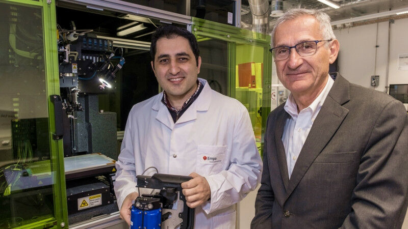 Innovation: Sina Abdolhosseinzadeh explains his project to former Empa Director Gian-Luca Bona: He wants to produce low-cost sensors for medical technology using a special printer. Image: Empa - Many potentially groundbreaking ideas are born in the minds of researchers at Empa - not all of them can be implemented, and for some there is simply no funding. The Empa Zukunftsfonds is intended to close this gap in the future; through professional fundraising, the Zukunftsfonds supports exciting research projects that have not yet received funding elsewhere, as well as particularly promising talents. The Ria & Arthur Dietschweiler Foundation is now supporting such a fellowship for young researchers for the first time with 270,000 Swiss francs. Empa is one of Switzerland's key drivers of innovation; application-oriented, practical, focused on the prime challenges of our time. In more than 400 ongoing research projects with several hundred partners from all over the world, researchers are developing innovative materials, technologies and concepts to enable the energy transition, advance a circular economy or bring personalized medical applications into everyday practice. To keep this innovation engine running, it needs to be kept lubricated - with scholarships, grants, donations and other types of financial support.