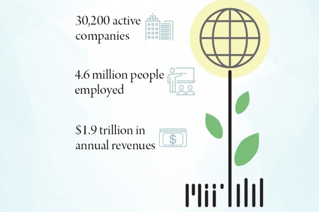 A new report estimates that, as of 2014, MIT alumni have launched 30,200 active companies, employing roughly 4.6 million people, and generating roughly $1.9 trillion in annual revenues.