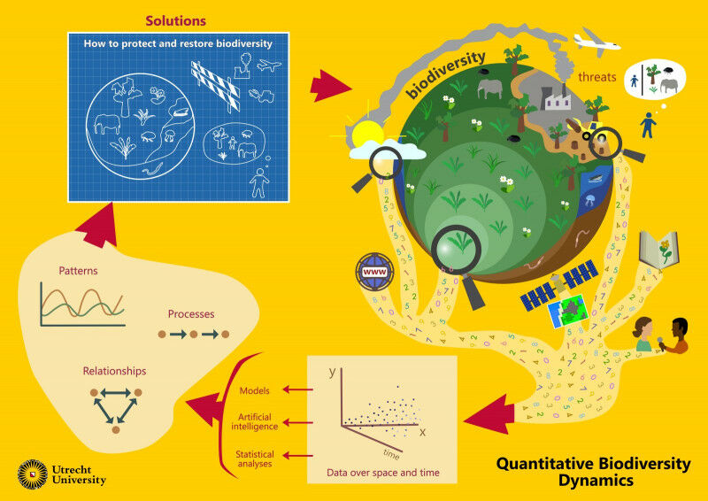 The research unit seeks patterns within data that lead to insights about how biodiversity can be restored and protected (click to enlarge) . Finding ways to make the best use of collected data to gain insight into biodiversity and how it changes over time. That is the goal of the new Quantitative Biodiversity Dynamics research unit. Yesterday, the unit, which is linked to the Botanic Gardens and the Department of Biology , presented itself to colleagues and students. Group leader Edwin Pos : "Ultimately, we hope that our fundamental research will contribute to guidelines on how to better protect and restore nature." Pos readily acknowledges that the group's name is a bit of a mouthful, but it does effectively convey their focus. "Our primary concern is examining biodiversity, the diversity of life in a given location, " Pos explains. "However, our scope is not restricted to a single moment in time; we are also investigating how biodiversity changes over time.