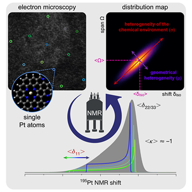 Single-atom catalysts are attracting growing interest in heterogeneous catalysis because they reduce the amount of metal used, thereby lowering the cost of the process, while also improving catalytic activity and/or selectivity. However, accurately characterising the coordination environments of each isolated metal atom, their distribution and their evolution under catalytic conditions remains a major challenge. Scientists have shown how 195Pt NMR spectroscopy can be used to accurately visualise the local environment of platinum atoms dispersed within a porous support. Better still, they have managed to track its evolution during the catalytic reaction. This is key information for improving catalytic performance.