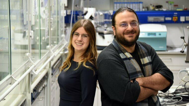 Desirée Leistenschneider (l.) and Sina Saravi (r.) are funded by the CZS Nexus programme. Image: Anne Günther (University of Jena) - This year, the Carl Zeiss Foundation's funding for interdisciplinary research topics goes twice to the University of Jena: Starting 1st February, 2024, the funding for Dr Sina Saravi begins, who is developing optical neural networks to make image recognition faster and more resource-efficient. And since 1st January, 2024, Dr Desirée Leistenschneider has been funded for developing innovative batteries. Both research groups receive 1.5 million euros each for a period of five years. "Put simply, my team and I are working on a kind of intelligent, nanostructured camera lens," explains Sina Saravi about his work on optical neural networks. He and his research group are developing stacks of nanostructured optical elements that change incoming light in a specific way.