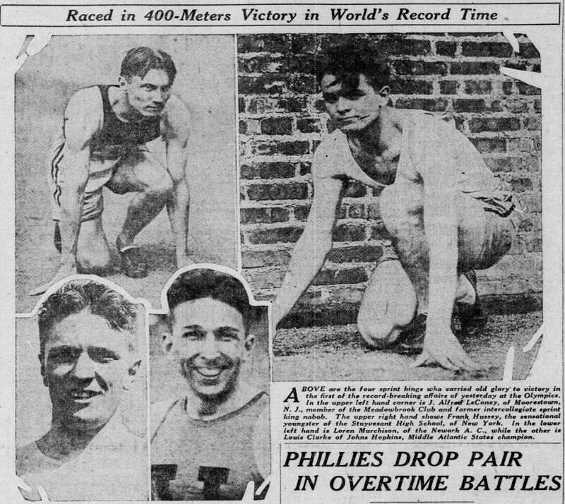 The "Hopkins Speed Merchant" was the second runner in the 4x100 relay, taking the baton from Frank Husey and handing it to Loren Murchison (also a gold medalist in the event in 1920), with Jeremiah Alfred LeConey running the anchor leg. The U.S. team set two world records in Paris-the clocked in at 41.2 seconds in their qualifying heat, besting the previous mark of 42.2 seconds. They bettered that in the final with their gold-medal time of 41 seconds flat. The British team that finished two-tenths of second later to win silver included runner and long jumper Harold Abrahams, who took gold in the 100m in Paris and whose track exploits are depicted in the Oscar-winning 1981 film Chariots of Fire (think slow-motion runners and a Vangelis soundtrack).