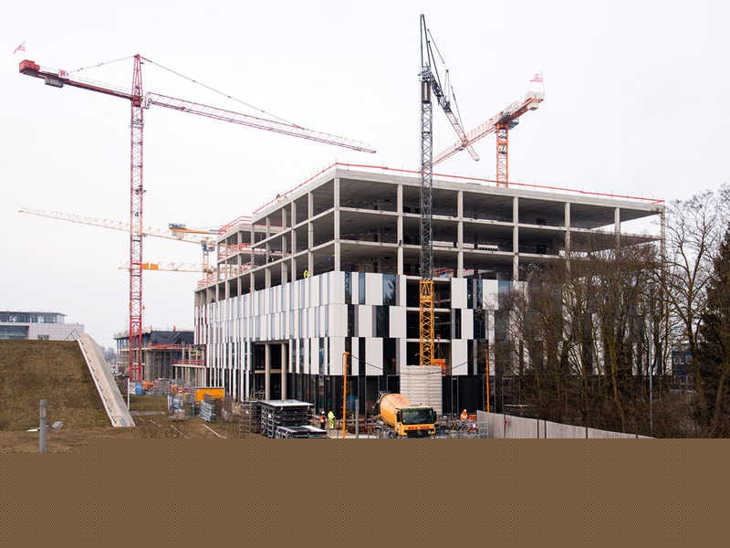 Campus news - The largest campus of the Technical University of Munich (TUM) in Garching celebrates the topping out ceremony of its central infrastructure project, 'GALILEO,' today. In addition to a new lecture hall and space for TUM facilities, it houses shops, restaurants, a hotel with a guest house and a congress center. This gives the science-supporting services on campus a tremendous thrust. While the scientific facilities of the Garching research campus developed rapidly, the development of the infrastructure remained behind. An important step forward was the connection to the subway a few years ago. The infrastructure project "GALILEO", which today celebrates its topping-out ceremony, is the next important cornerstone for future campus development. The long-stretched building complex will be ready for occupancy in the TUM anniversary year of 2018.