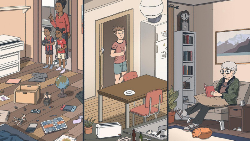 Scenes from 'Quatre apparts et un confinement' © Mathias Hängärtner - An interactive video game created by researchers and students in the College of Humanities (CDH) and UNIL Gamelab, in collaboration with the Initiative for Media Innovation (IMI) and Le Temps, allows users to explore a series of digital narratives that bear witness to the period of pandemic-induced isolation. Would you let your children play in the park? How can you stay focused during your distance-learning course? Who are you going to call to pass the time while semi-confined? People across the world are dealing with these questions, and many more, as social distancing and confinement have become key strategies for fighting the coronavirus pandemic. For CDH scientist and UNIL Gamelab researcher Yannick Rochat, an expert in game studies and digital humanities, a narrative video game seemed like a natural medium for exploring these questions, and how different people struggle to respond to them in different ways. "Video games can convey information as well as emotions. The idea behind this game is to have a testimony to this period in history that has impacted us all. For a newspaper like Le Temps and for a researcher like myself, it is important to document and keep an account of these experiences," he says. On August 20