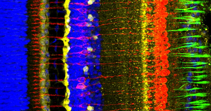 Confocal microscopy image of a retina: The retina, which lines the inside of our eye, is already a fantastic evolutionary ’innovation.’ The cells of the retina convert light into nerve impulses. Image: PC Koch, M Hess; J Neurosci Res 89:1316 (2011); doi:10.1002/jnr.22651