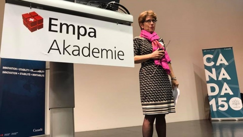 In one of her first official appearances, the new Canadian ambassador, Susan Bincoletto, accepted an invitation from Empa. The ambassador, who has been in office since September, arrived on October 2, 2017 at Empa Dübendorf with energy sector representatives from Canada and Switzerland as part of the Smart Grid and Energy Storage Road Show. Peter Richner, head of the Engineering Sciences department and deputy director of Empa, welcomed the guest from Bern with a speech. Susan Bincoletto opened the Smart Grid and Energy Storage Road Show, thereby completing one of her first official appearances since her appointment in September. The Canadian embassy invited energy sector players from Canada and Switzerland to the event at the Empa Academy in Dübendorf to discuss new developments and challenges in electricity distribution and storage. According to Richner, the subject of the Road Show is important for Switzerland, particularly with regard to the 2050 energy strategy. The agenda also included a panel discussion headed by Ron Dizy from the research park MaRS Discovery District in Toronto.