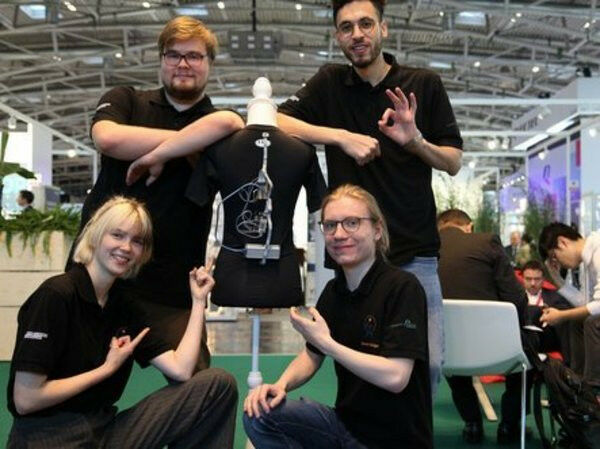 Der TU Ilmenau Bürgercampus findet am 20.10. um 15 Uhr im Faradaybau statt Topic: Smart textiles? - How small sensors can help to stay healthy Speaker: Thomas Helbig, TU Ilmenau, Department of Biomechatronics Time: Friday, 20.10.2023, 3:00 p.m. Place: TU Ilmenau, Faradaybau, Weimarer Straße 32 Admission: 5 Euro Sensors are getting smaller and lighter, and yet their technological development allows ever new, innovative products with completely new possibilities - for example, smart textiles. By leaving sensors in the fabric and equipping it with special functions, a student and three students at the Department of Biomechatronics at TU Ilmenau developed an "intelligent T-shirt" that can monitor the movement of the spine. With their invention, the students won the "Competition of Students in Microsystems Applications" competition of the Association for Electrical, Electronic & Information Technologies VDE at the world's leading electronics trade fair electronica in Munich. The concept of the intelligent T-shirt: Two small sensors, mounted in the T-shirt between the shoulder blades and above the coccyx in fabric pouches, record angular velocities and linear accelerations during movements. From these values, the electronics calculate the inclination and rotation of the spine during walking and wirelessly transmit the data collected by a microcontroller to a PC or smartphone for analysis. The new technology could be used in medical diagnostics in the future and protect against back injuries.