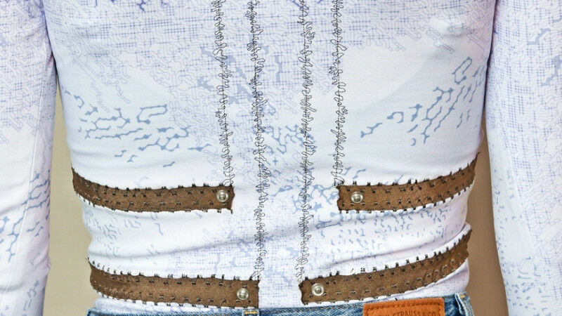 A shirt that monitors breathing: Designer Laura Deschl developed the monitoring system to wear together with Empa. Image: Empa - With sensors that measure health parameters and can be worn on the body, we do let technology get very close to us. A collaboration between Empa and designer Laura Deschl, sponsored by the Textile and Design Alliance (TaDA) of Eastern Switzerland, shows that medical monitoring of respiratory activity, for example, can also be very stylish - as a shirt. The desire for a healthy lifestyle has triggered a trend towards self-tracking. Vital signs should be available at all times, for example to consistently measure training effects. At the same time, among the continuously growing group of people over 65, the desire to maintain performance into old age is stronger than ever. Preventive, health-maintaining measures must be monitored if they are to achieve the desired results.