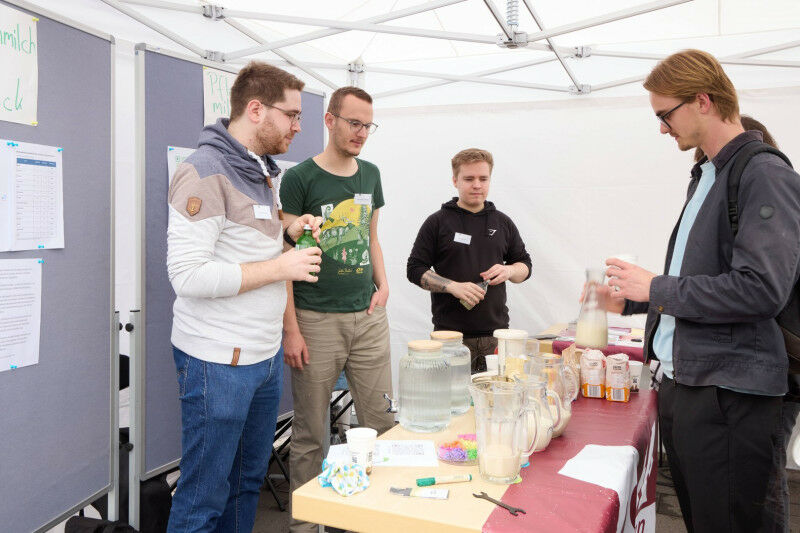As well as research, teaching and operations, there were also a number of student initiatives on show during the Sustainability Day. At its stall, the Environmental Department of the General Students’ Committee (AStA) demonstrated how easy it is to make your own oat milk: simply blend rolled oats with water and strain, and your homemade alternative to cow’s milk is ready to drink. Besides being able to try the oat milk ("delicious" was the general consensus), visitors also learned about the environmental impact of various kinds of plant-based milk compared to its dairy equivalent. In fact, the AStA’s oat milk was especially sustainable because the mixer used to make it ran on solar power from a portable solar panel positioned right next to the stall.