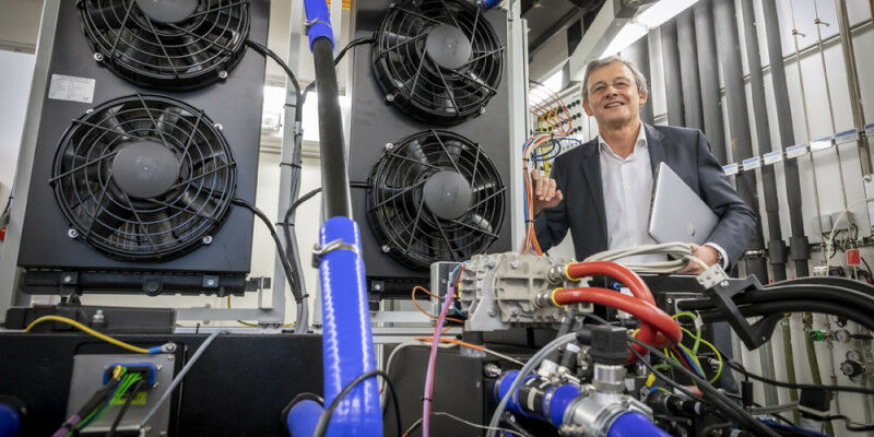 Environmentally friendly mobility is close to Helmut Eichelseder's heart. Lunghammer - TU Graz - By Birgit Baustädter Fossil combustion engines are generally considered to be less environmentally friendly, as they are responsible for a large proportion of transport-related CO2 emissions. Helmut Eichlseder, explains why the internal combustion engine cannot be missing from the sustainable mobility mix. "Internal combustion engines have been more or less written off in the court of public opinion," explains Helmut Eichlseder , casually crossing his legs as he sits at the head of his conference table in Inffeldgasse in Graz. His office is on the third floor of a gleaming white new building in the middle of Campus Inffeldgasse - three floors above the engine test benches for which the Institute of Internal Combustion Engines and Thermodynamics is known, among other things. The man with the brown-grey waves of hair has now been head of the Institute for 20 years and has decisively pushed the Institute's path towards sustainable mobility. Today, researchers are primarily concerned with sustainable forms of mobility, conducting research on fuel cells as vehicle propulsion, hydrogen as fuel in combustion engines and e-fuels as an alternative in conventional engines.