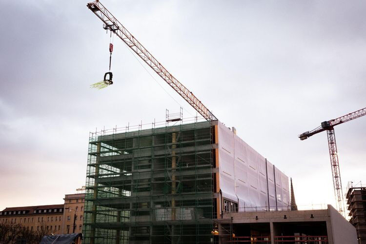 A major milestone was reached today on Wilhelm-Leuschner-Platz in Leipzig. At the topping-out ceremony for the new Global Hub, State Minister of Finance Christian Piwarz, State Minister of Science Sebastian Gemkow and Leipzig University’s Rector, Professor Eva Inés Obergfell, joined the construction team in acknowledging the progress of the build. With the hoisting of the ceremonial topping-out wreath, the next phase of construction was symbolically ushered in. The structural work is now complete and interior construction is beginning - an important stage on the way to establishing a new centre for international cutting-edge research in Leipzig.