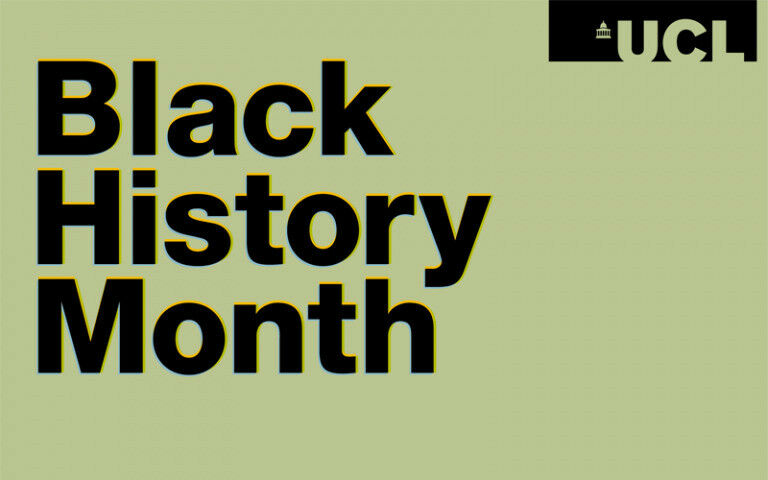 Black History Month wording on green background with UCL logo