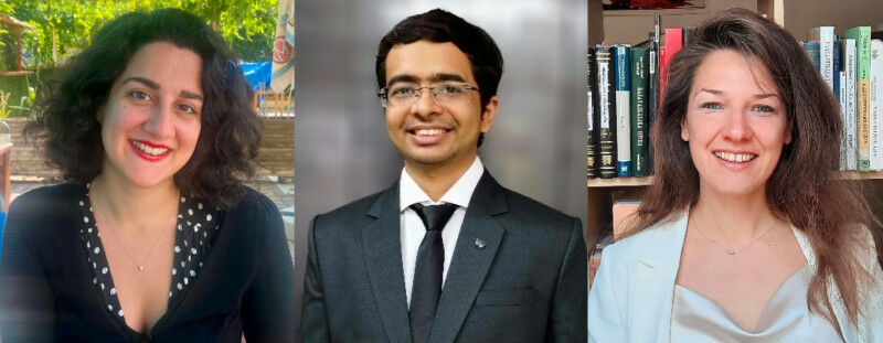 Clockwise from top: Dr Areti Theofilopoulou - Assistant Professor in the Ethics of Non-Violence, Jinesh Sheth - Post-Doctoral Research Fellow in Jain Studies, and Dr Marie-Hélène Gorisse - Dharmanath Assistant Professor in Jain Studies.