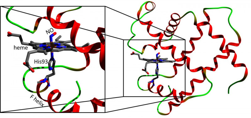 Myoglobin (right) and its heme region (left). Credit: Majed Chergui (EPFL)