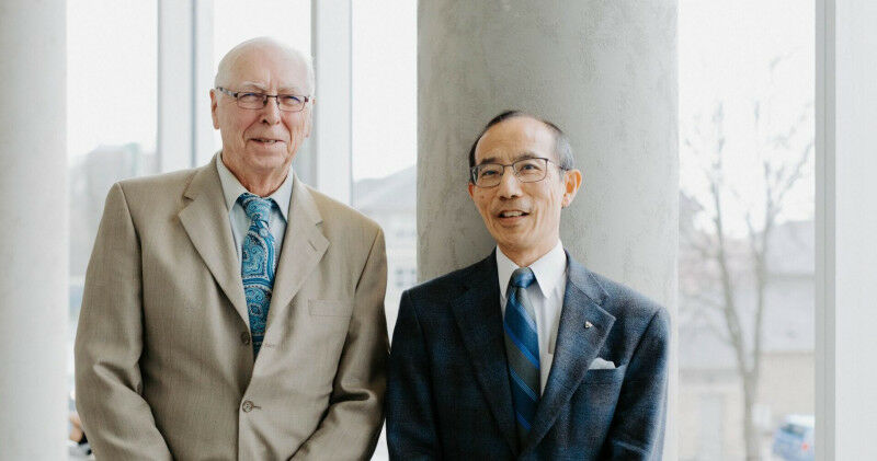 The research chair honours the contributions of (right) Dr. Joseph Chin and (left) Bob Hardie in cancer research and patient care for over four decades. (Sarah Folkes-Fergusson/LHSF)