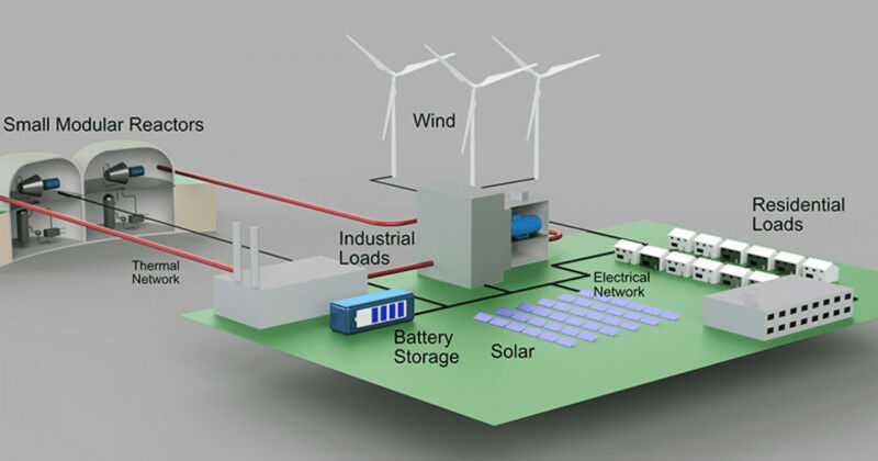 A microgrid with small modular reactors and renewable energy resources. (Dennis Michaelson/Western Engineering image)