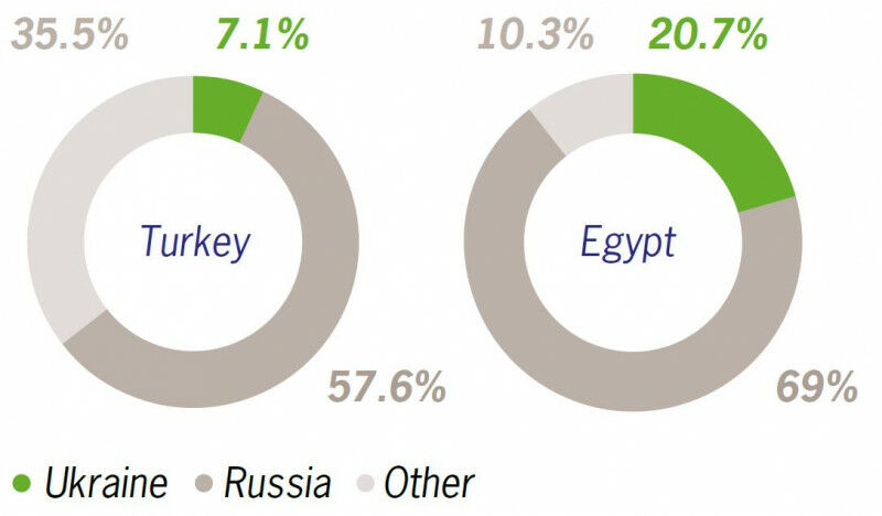 Ukraine’s and Russia’s share of total wheat imports. Source: UN Comtrade, 2020 figures