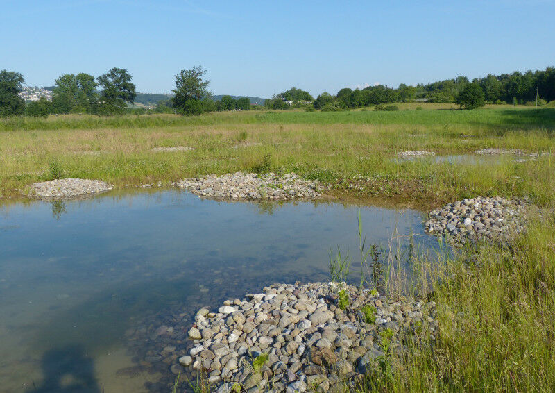 How many ponds should we create? What should they look like? And where is a good location? These are the questions most frequently asked by nature conservation experts when it comes to protecting amphibians. "At last, we have concrete recommendations," says Helen Moor, biologist and head of the Eawag Ecological Modelling research group. As part of the Blue-Green Biodiversity research initiative, she worked with researchers from the aquatic research institute Eawag, the Swiss Federal Research Institute for Forest, Snow and Landscape (WSL) and the Swiss fauna information centre info fauna karch to find simple parameters and specific recommendations to provide practitioners with useful aids for planning and building new ecological infrastructures by constructing natural ponds.