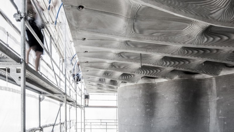 Researchers at ETH Zurich have fabricated an 80 m2 lightweight concrete slab at the DFAB House, making it the world's first full-scale architectural project to use 3D sand printing for its formwork. The DFAB House will be built in the NEST building on the Empa and Eawag campus in Dübendorf. Just 20 mm thick at its thinnest point, decoratively ribbed and not even half as heavy as a conventional concrete ceiling: with "Smart Slab", the name says it all. The slab combines the structural strength of concrete with the design freedom of 3D printing. Developed by the research group of Benjamin Dillenburger, Assistant Professor for Digital Building Technologies at ETH Zurich, Smart Slab is one of the core elements of the residential unit DFAB House (see box) at Empa's and Eawag's research and innovation platform NEST in Dübendorf. The 80 m2, 15 tonne ceiling consists of eleven concrete segments and connects the lower floor with the two-storey timber volume above. 3D concrete printing is currently experiencing a boom in architecture, and entire houses have already been printed layer by layer.